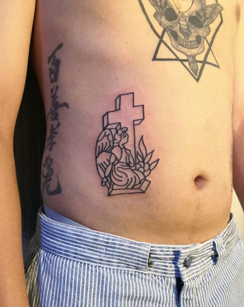 old守护天使纹身图片_腹部Old School天使纹身图案