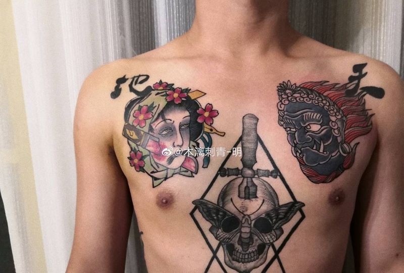 • 男性大花胸_42张优秀的男性大花胸纹身图案图片