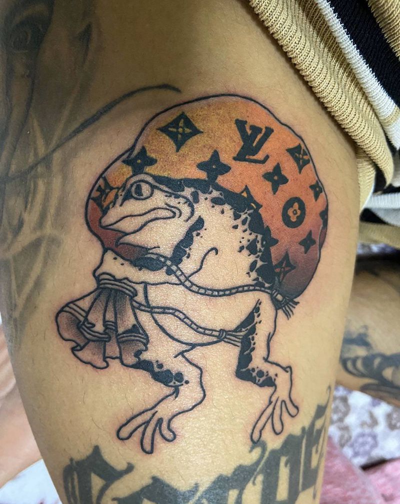 当前位置: 首页 >贵州省铜仁市纹身店-木漓刺青纹身图案>小青蛙纹身图片_腿部New School青蛙纹身图案