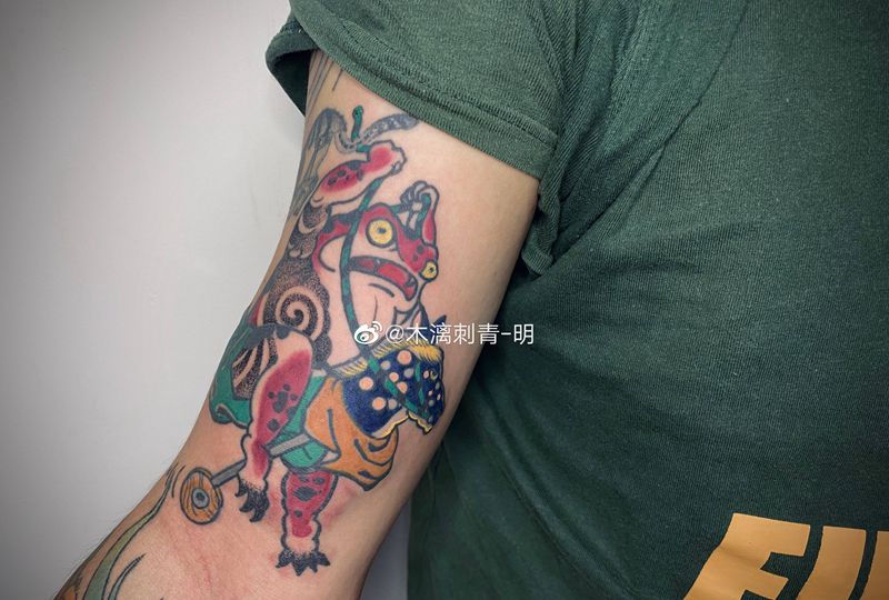 青蛙纹身图片_手臂新传统日式青蛙纹身图案