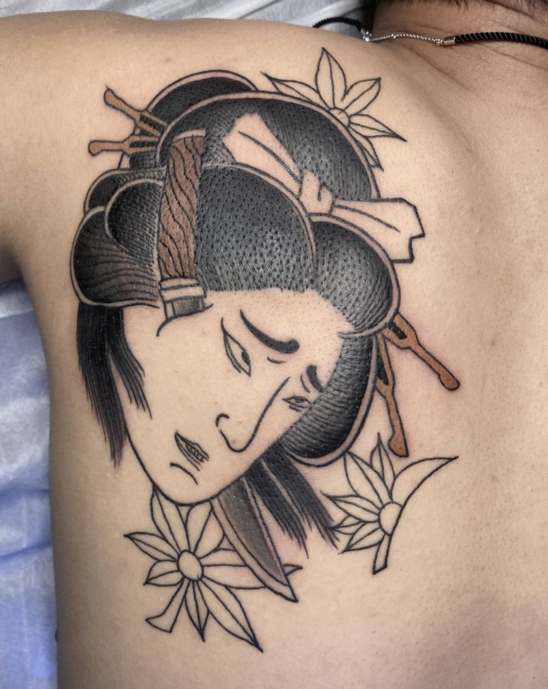 黑灰满背纹身图案