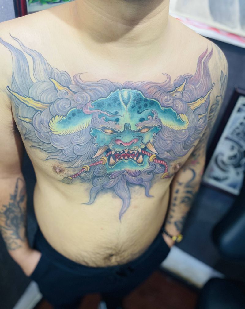 当前位置: 首页 >贵州省安顺市纹身店-后街刺青纹身图案>花胸唐狮纹身图片_胸部新传统不怒自威纹身图案