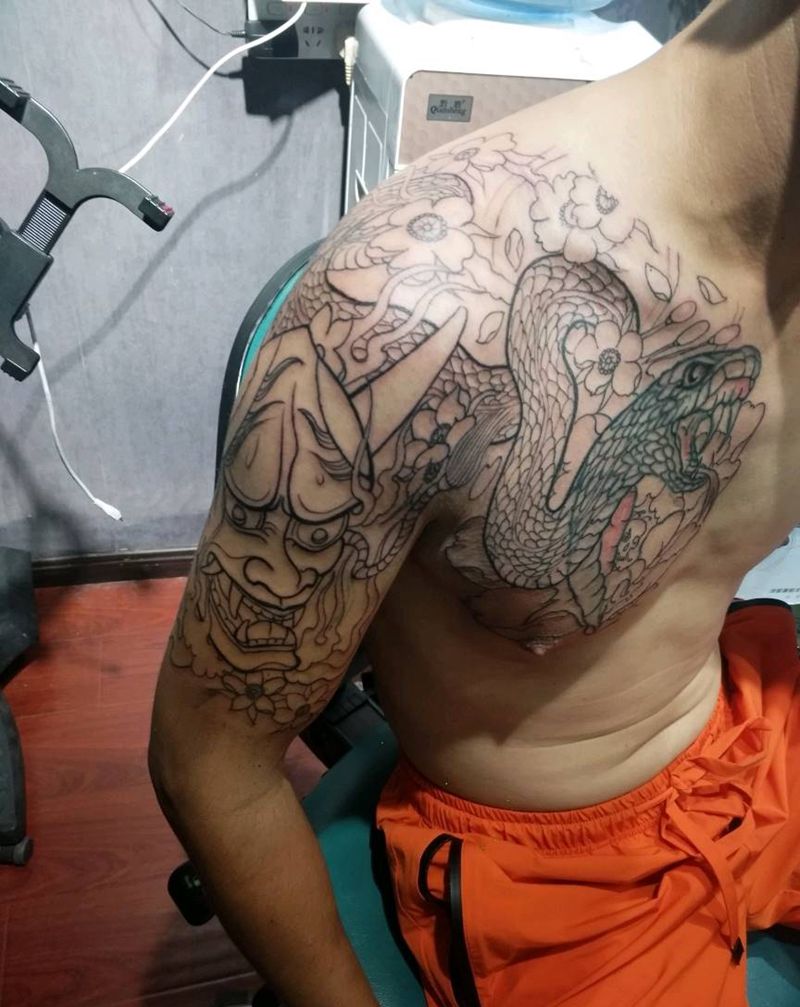 • 纹身吧推荐的披肩图腾半胛纹身图案作品展示