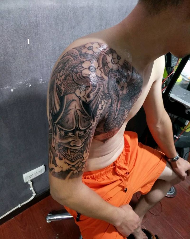 • 纹身吧推荐的披肩图腾半胛纹身图案作品展示