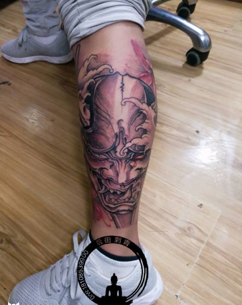 • T包小腿吹火男+阿多福纹身图片_腿部老传统新传统吹火男阿