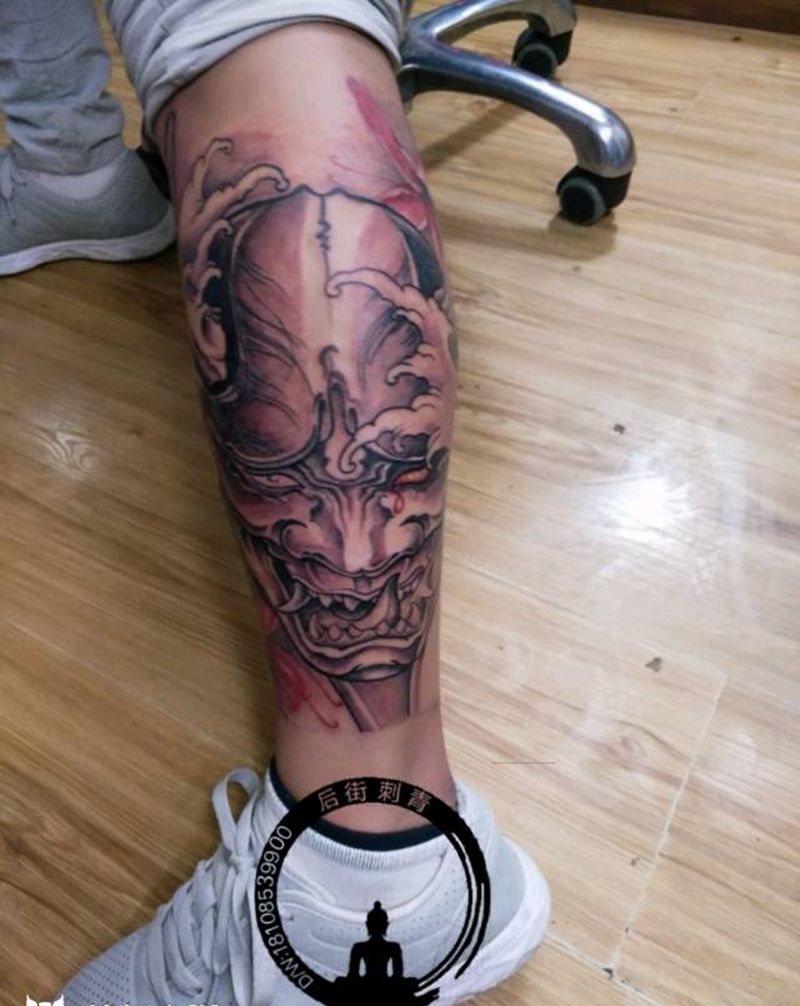 • T网红王老大花腿龙纹身图片_腿部新传统纹身图案