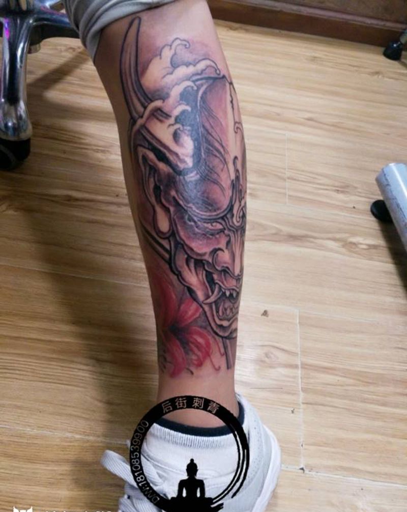 • T包小腿吹火男+阿多福纹身图片_腿部老传统新传统吹火男阿