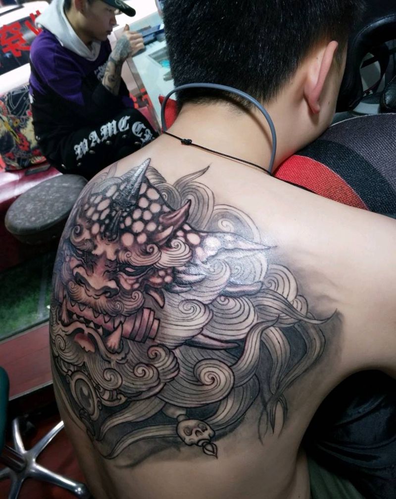 当前位置: 首页 >贵州省安顺市纹身店-后街刺青纹身图案>唐狮纹身图片_背部新传统威武霸气纹身图案