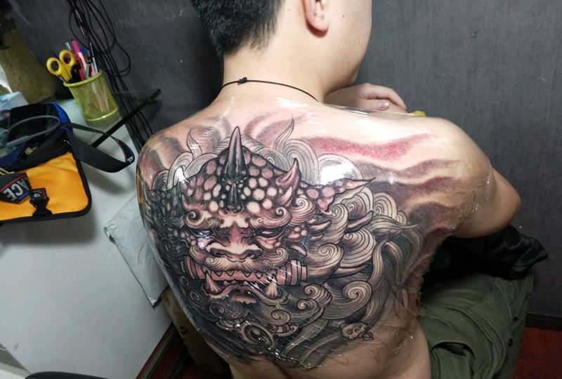 当前位置: 首页 >贵州省安顺市纹身店-后街刺青纹身图案>唐狮纹身图片_背部新传统威武霸气纹身图案