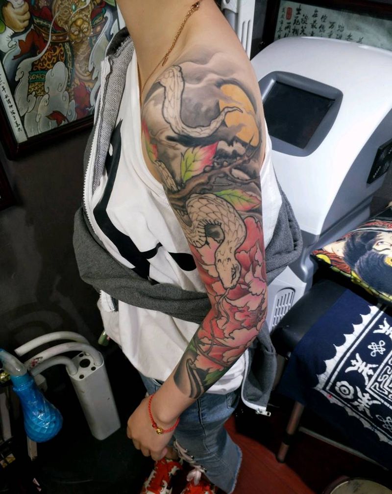 • 女性大花胸纹身_43张霸气漂亮的女性大花胸纹身图案作品