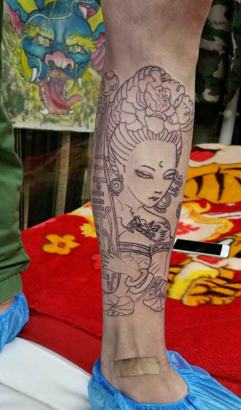 • T网红王老大花腿龙纹身图片_腿部新传统纹身图案