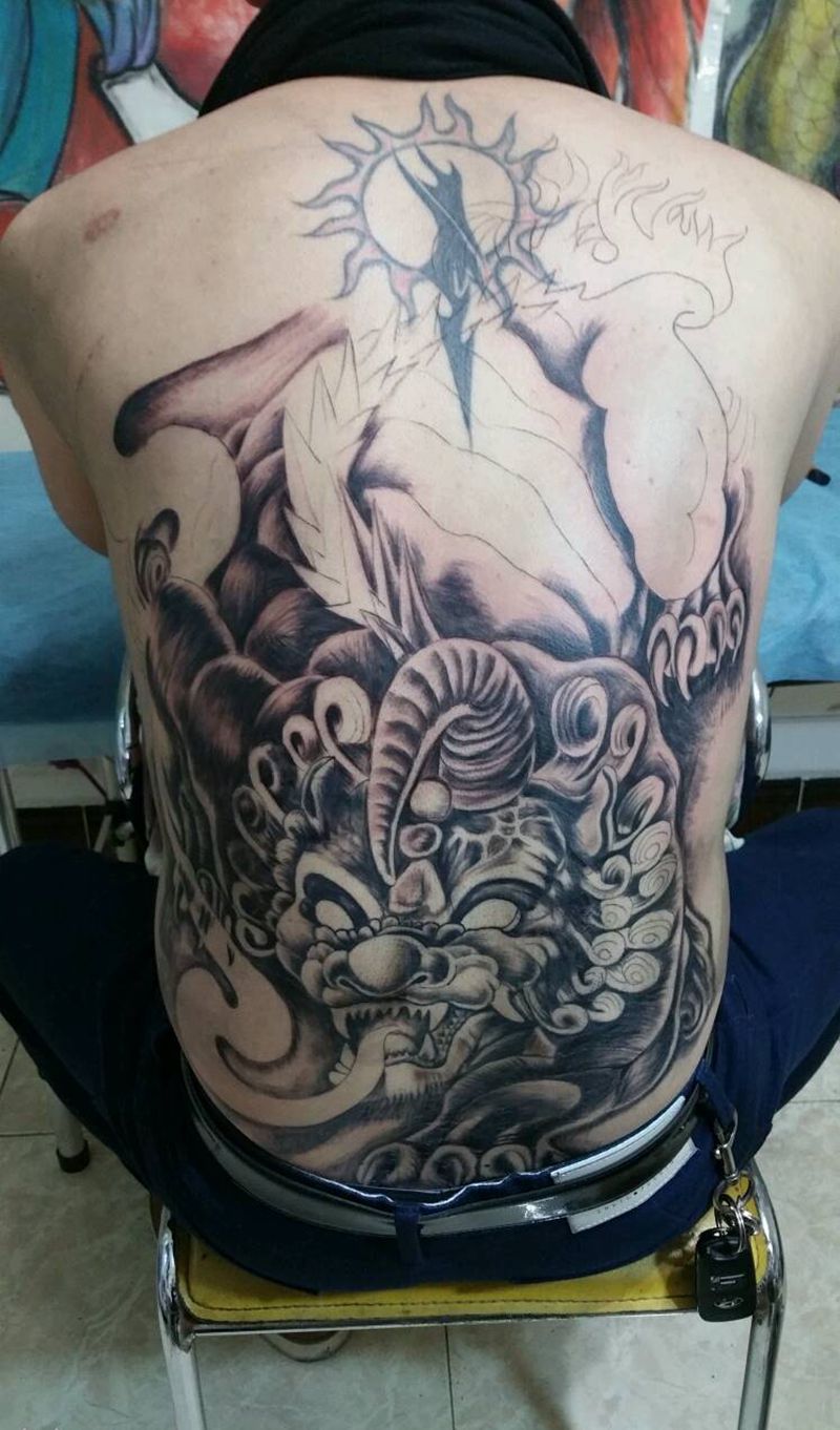 • 黑灰满背纹身图案