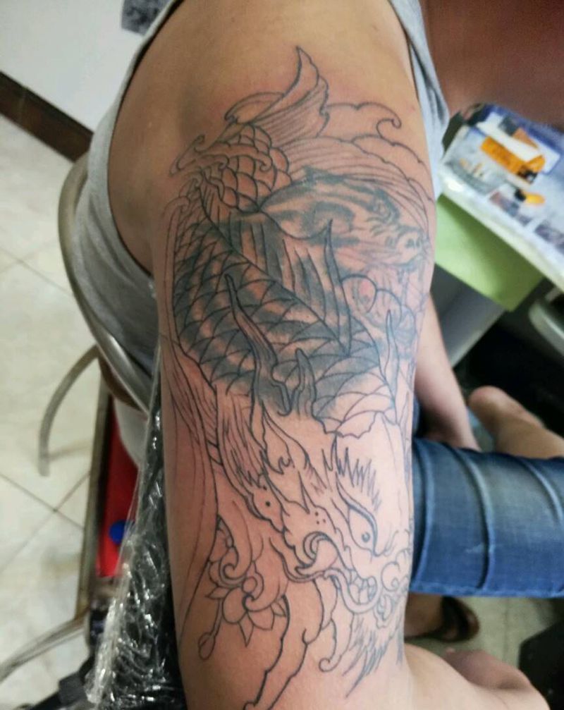 龙鱼遮盖纹身图片