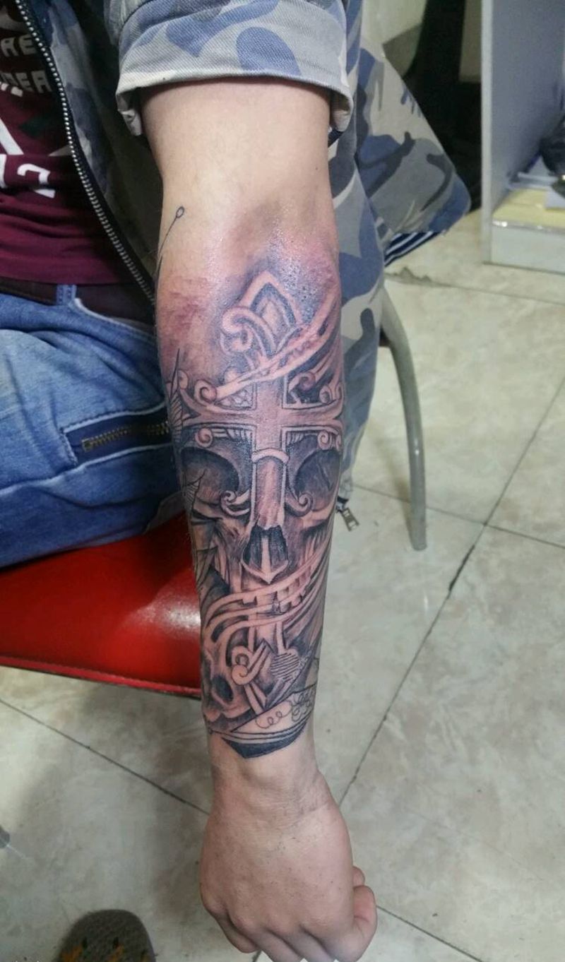 • H精美的十字架纹身图案 十字架刺青图片