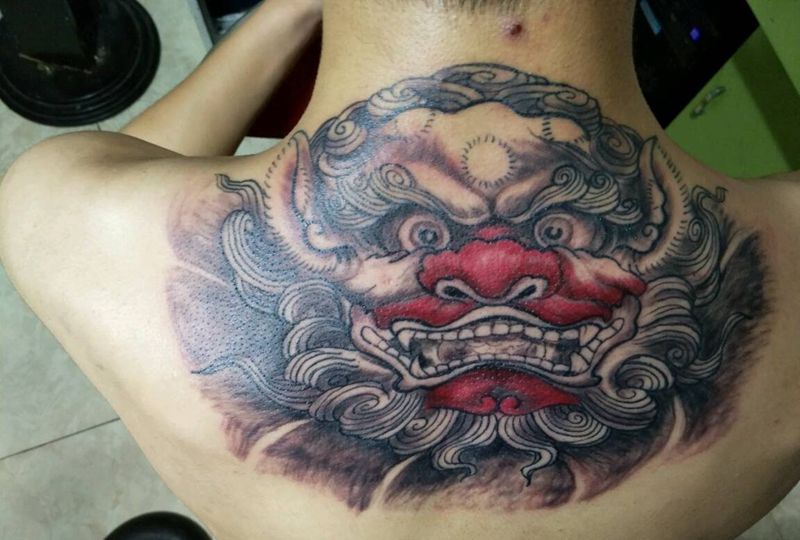当前位置: 首页 >贵州省安顺市纹身店-后街刺青纹身图案>唐狮纹身图片