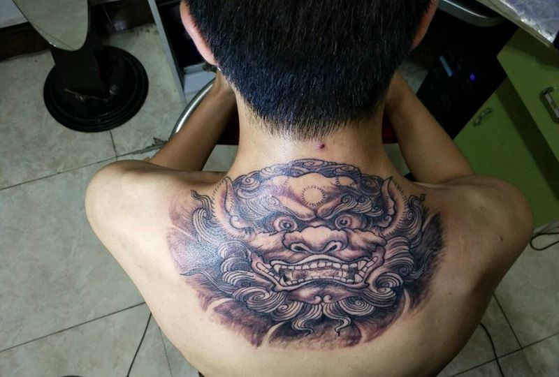 当前位置: 首页 >贵州省安顺市纹身店-后街刺青纹身图案>唐狮纹身图片