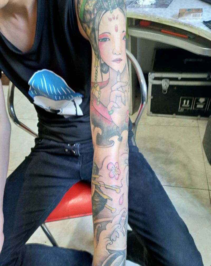 当前位置: 首页 >贵州省安顺市纹身店-后街刺青纹身图案>艺妓花臂纹身图片