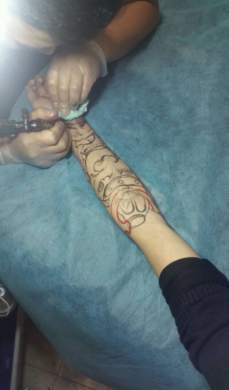 当前位置: 首页 >贵州省安顺市纹身店-后街刺青纹身图案>勇者妖王纹身图片_手臂传统鬼神成品纹身图案