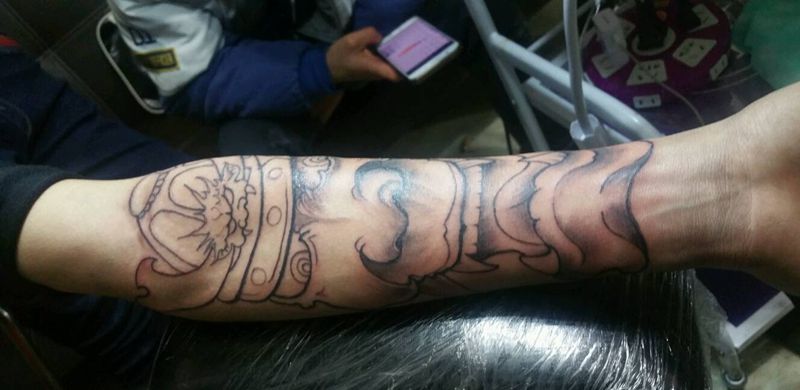当前位置: 首页 >贵州省安顺市纹身店-后街刺青纹身图案>勇者妖王纹身图片_手臂传统鬼神成品纹身图案