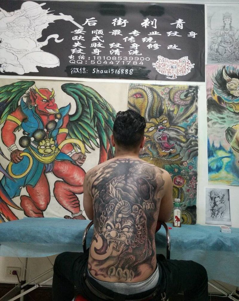 黑灰满背纹身图案
