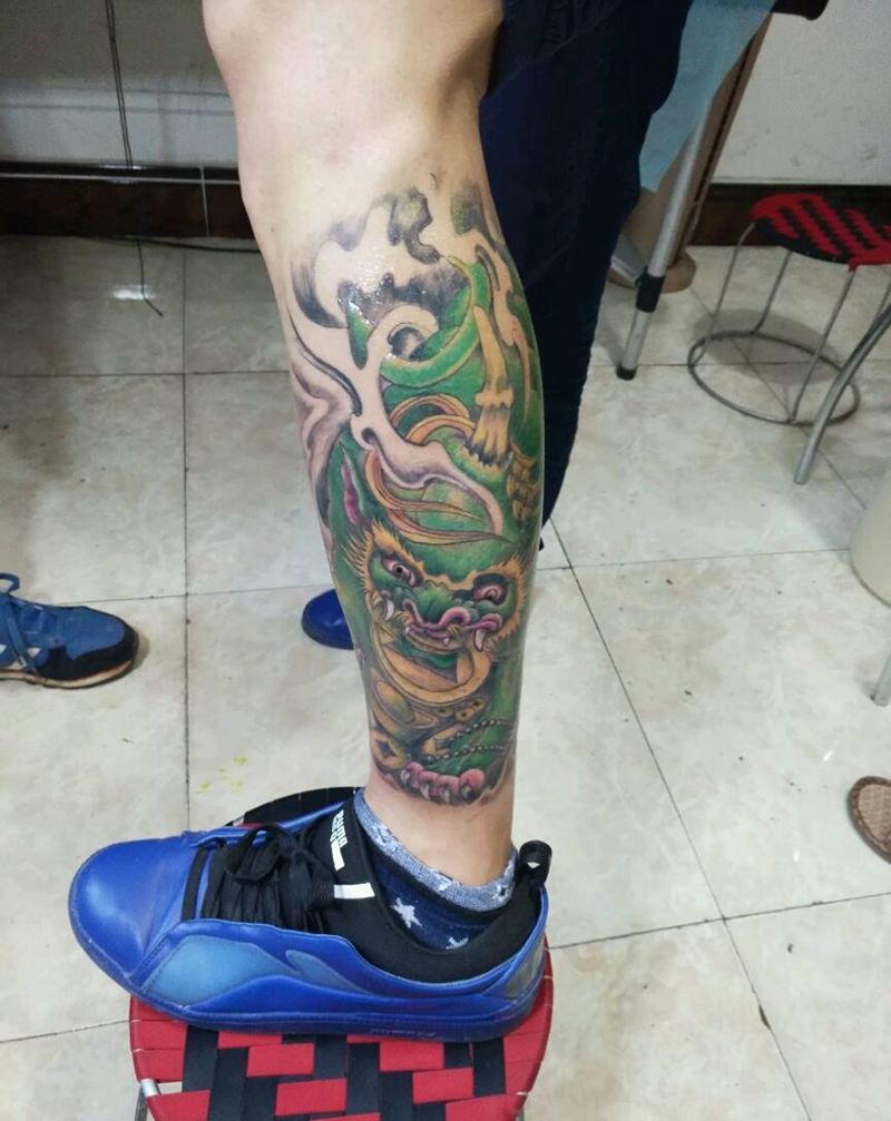 • T网红王老大花腿龙纹身图片_腿部新传统纹身图案