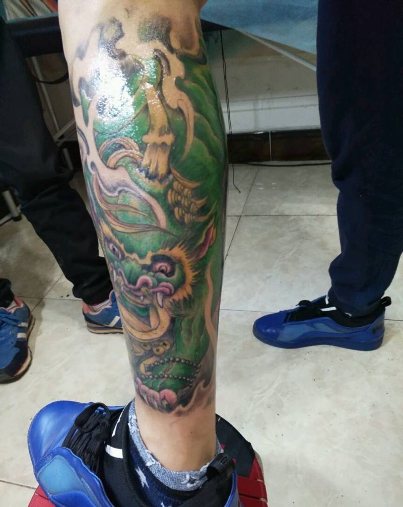 • T网红王老大花腿龙纹身图片_腿部新传统纹身图案