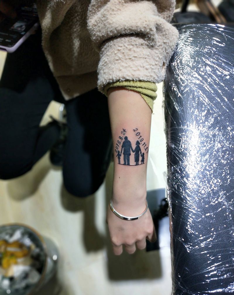 • T家庭图,一家四口生日纪念!纹身图片_手臂纹身图案