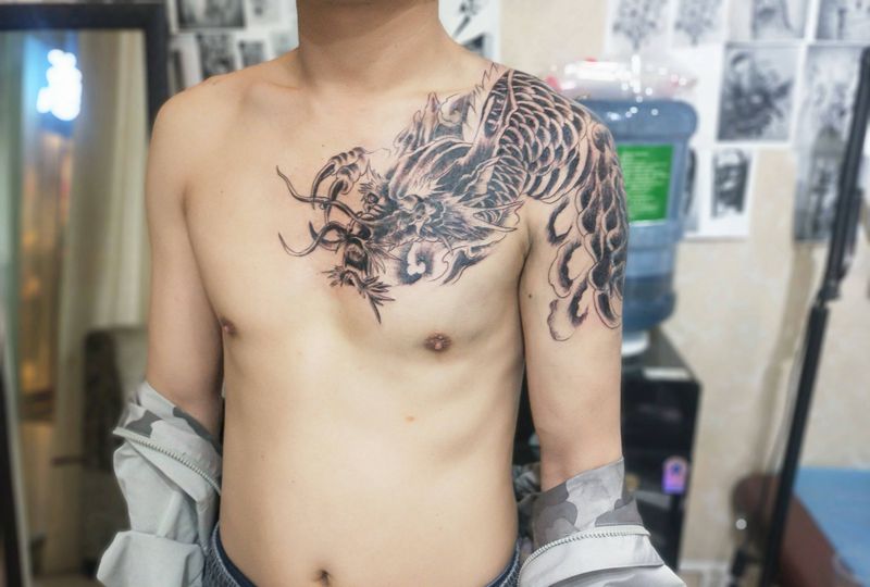 当前位置: 首页 >贵州省黔南布依族苗族自治州纹身店-As 刺青TATTOO纹身图案>过肩龙 上色纹身图片_背部肩部老传统纹身图案