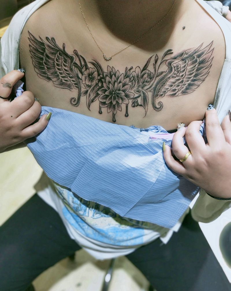 • 女性大花胸纹身_43张霸气漂亮的女性大花胸纹身图案作品