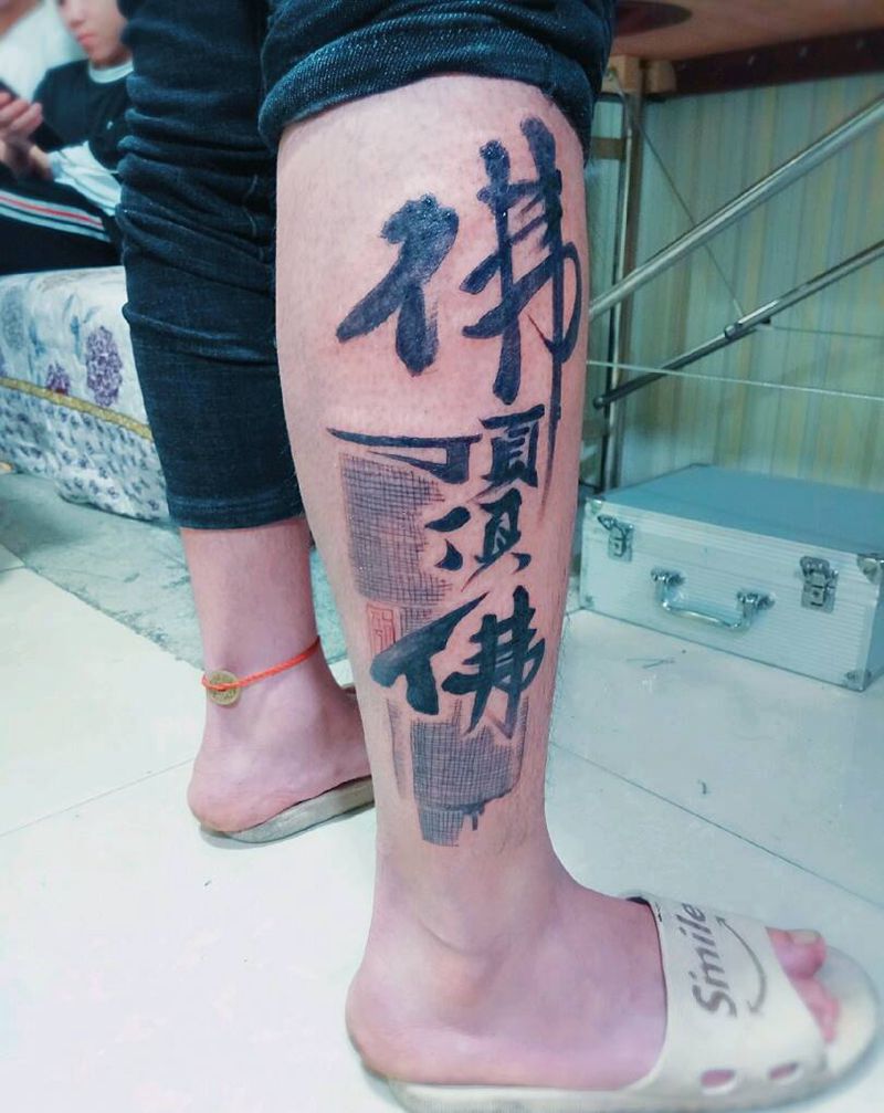 • T包小腿吹火男+阿多福纹身图片_腿部老传统新传统吹火男阿