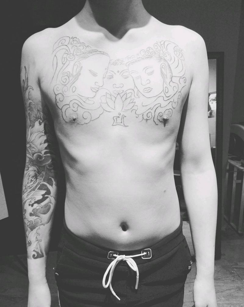 三面佛纹身图片_胸部纹身图案