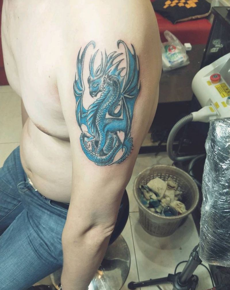 • T网红王老大花腿龙纹身图片_腿部新传统纹身图案