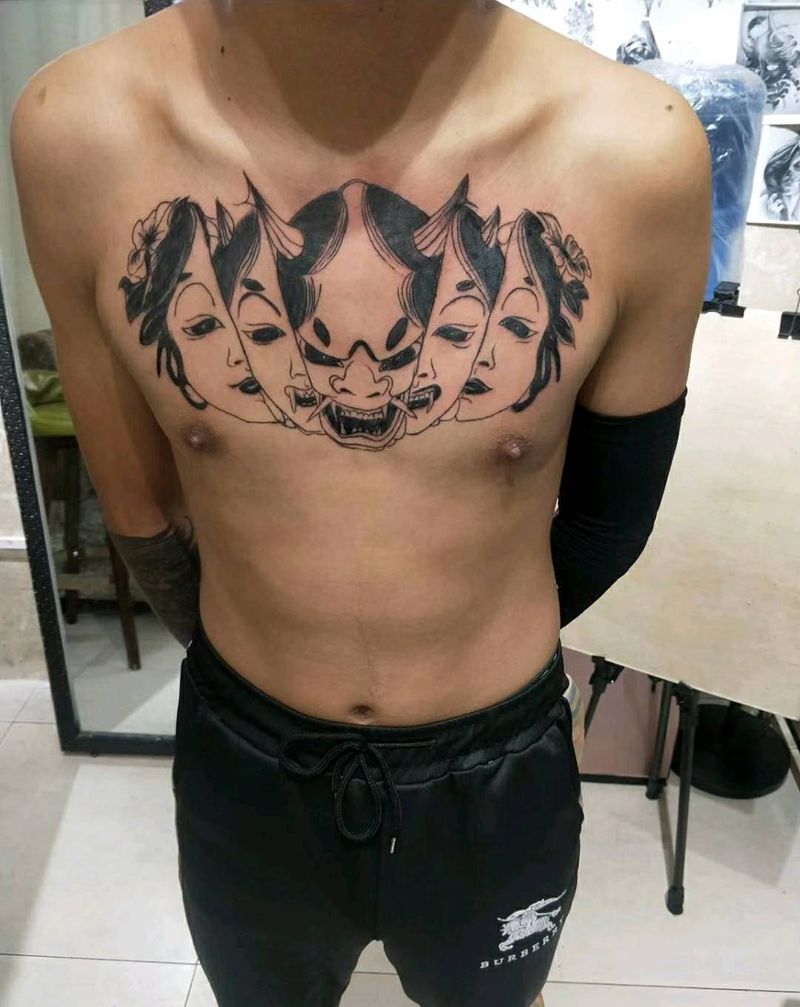 日式花胸纹身图片_胸部老传统纹身图案