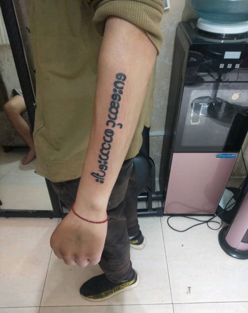 当前位置: 首页 >贵州省黔南布依族苗族自治州纹身店-As 刺青TATTOO纹身图案>中缅混血 缅甸文纹身图片_手臂纹身图案