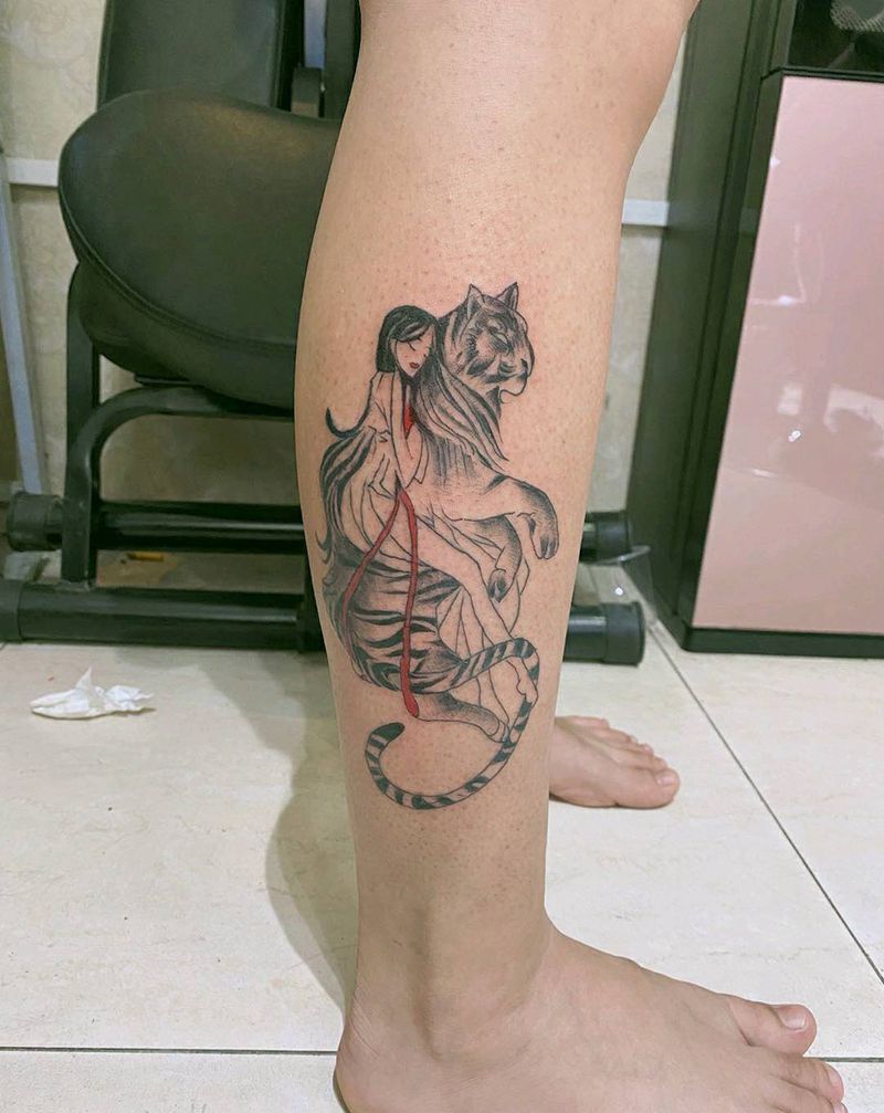 • T网红王老大花腿龙纹身图片_腿部新传统纹身图案