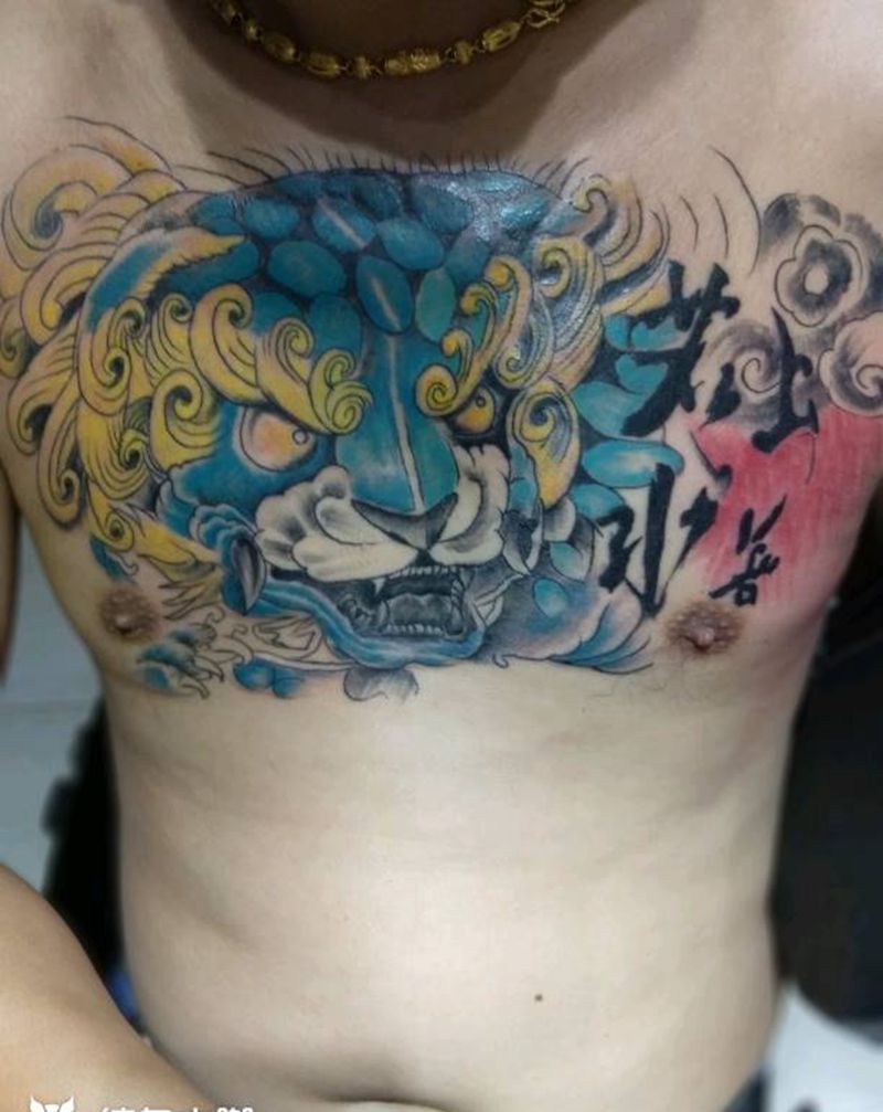当前位置: 首页 >贵州省黔南布依族苗族自治州纹身店-As 刺青TATTOO纹身图案>唐狮 花胸纹身图片_胸部新传统水墨纹身图案