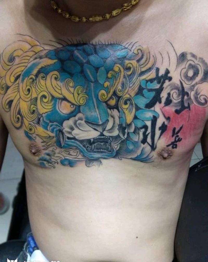 当前位置: 首页 >贵州省黔南布依族苗族自治州纹身店-As 刺青TATTOO纹身图案>唐狮 花胸纹身图片_胸部新传统水墨纹身图案