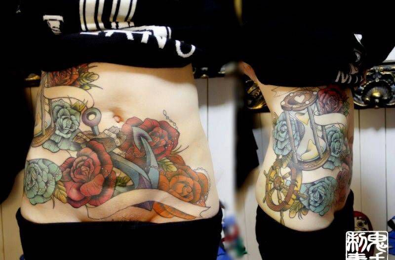 • T关于私处得爱!纹身图片_成品腹部清新字符图腾纹身图案