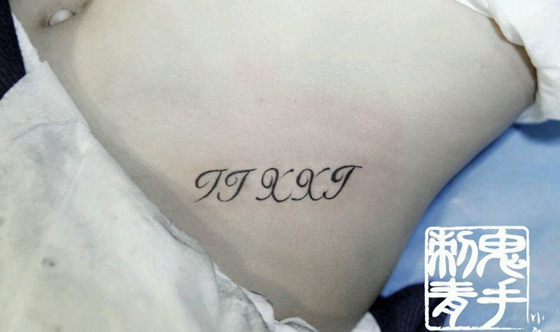 • T关于私处得爱!纹身图片_成品腹部清新字符图腾纹身图案