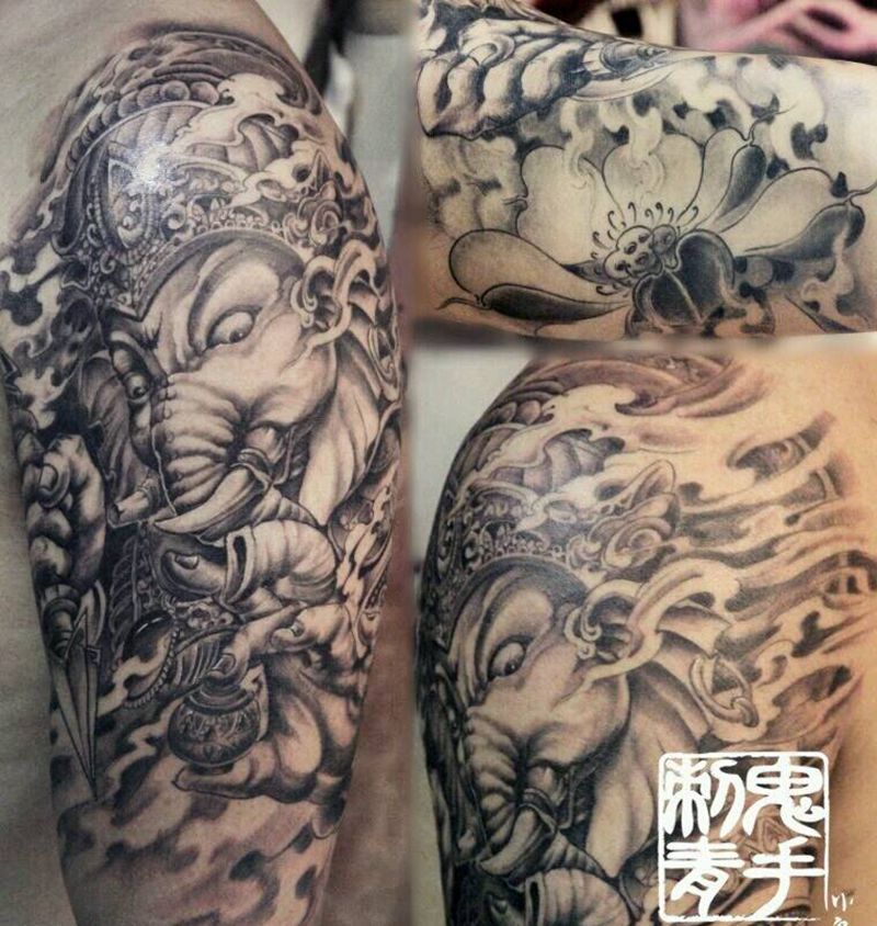 一组15张莲花纹身手