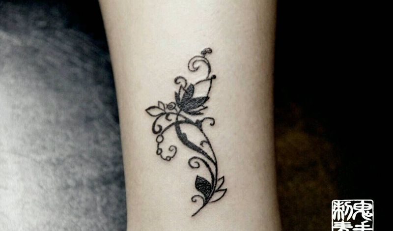 • 东方性感美女腰部温馨花藤图纹身图片