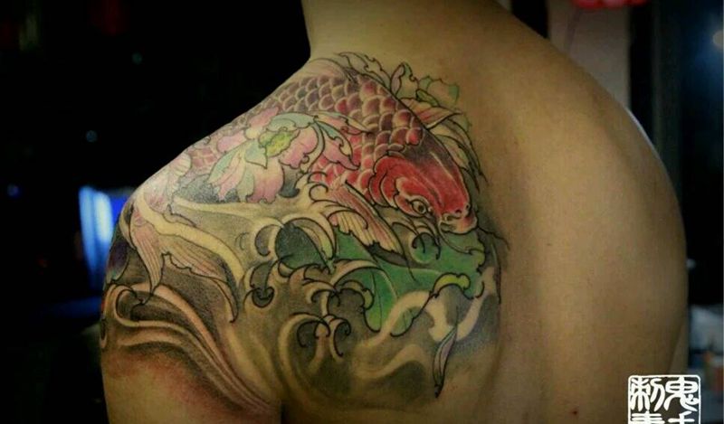 • 纹身吧推荐的披肩图腾半胛纹身图案作品展示