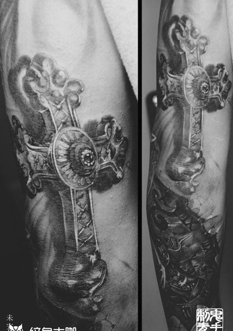 • H精美的十字架纹身图案 十字架刺青图片