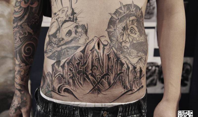 • T关于私处得爱!纹身图片_成品腹部清新字符图腾纹身图案