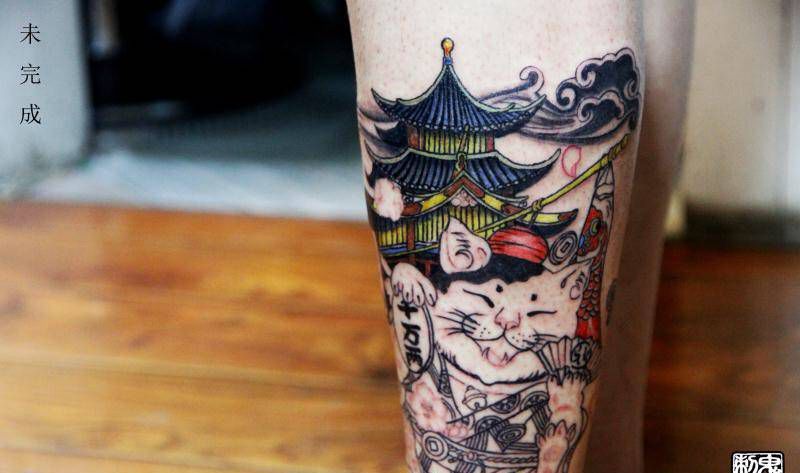 • T网红王老大花腿龙纹身图片_腿部新传统纹身图案