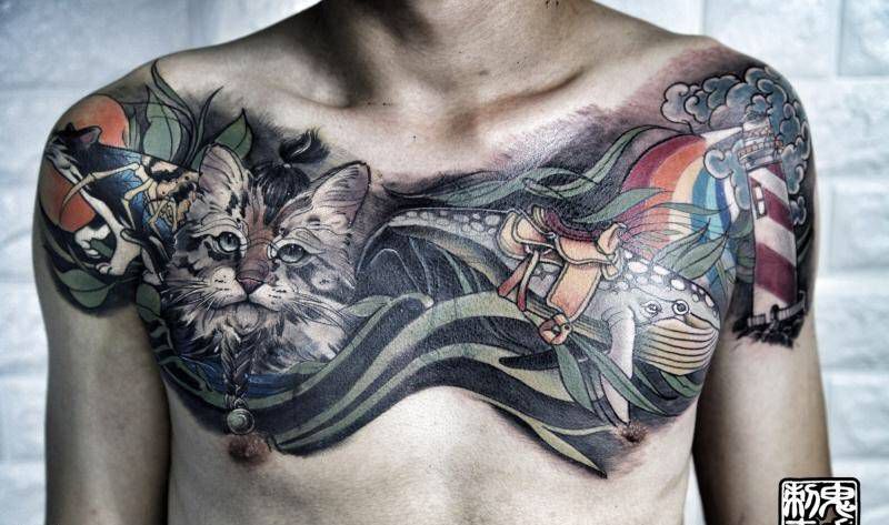 • 男性大花胸_42张优秀的男性大花胸纹身图案图片