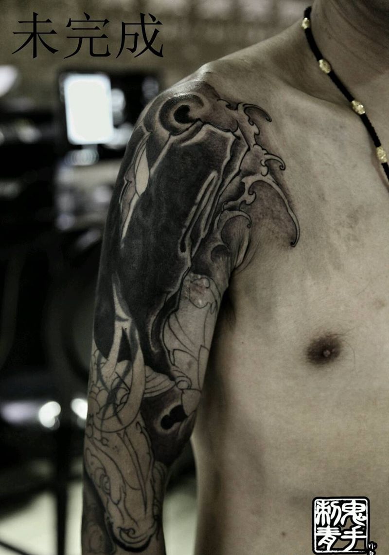 • 纹身吧推荐的披肩图腾半胛纹身图案作品展示