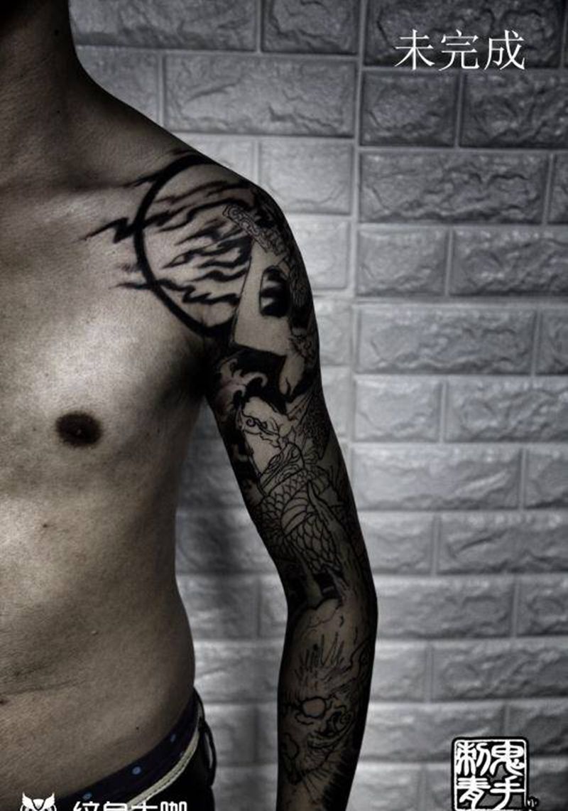 黑灰满背纹身图案