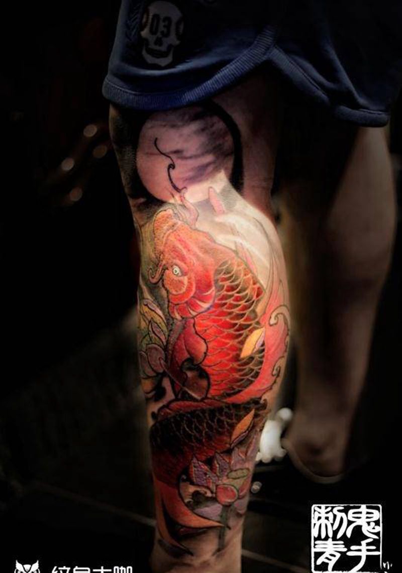 • T网红王老大花腿龙纹身图片_腿部新传统纹身图案