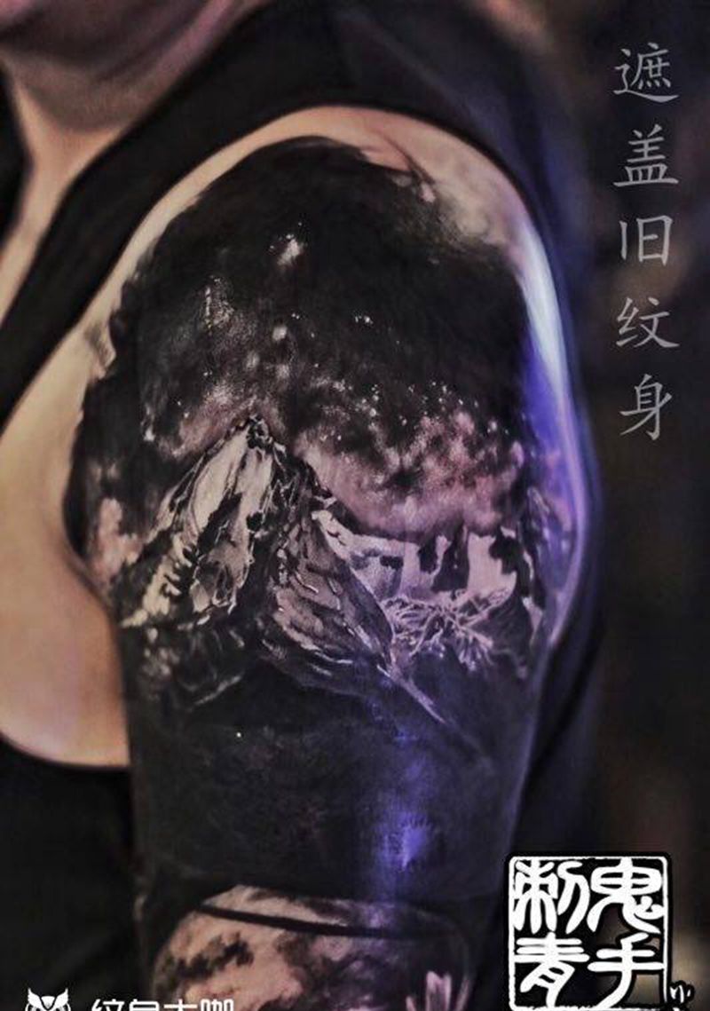 • 纹身吧推荐的披肩图腾半胛纹身图案作品展示